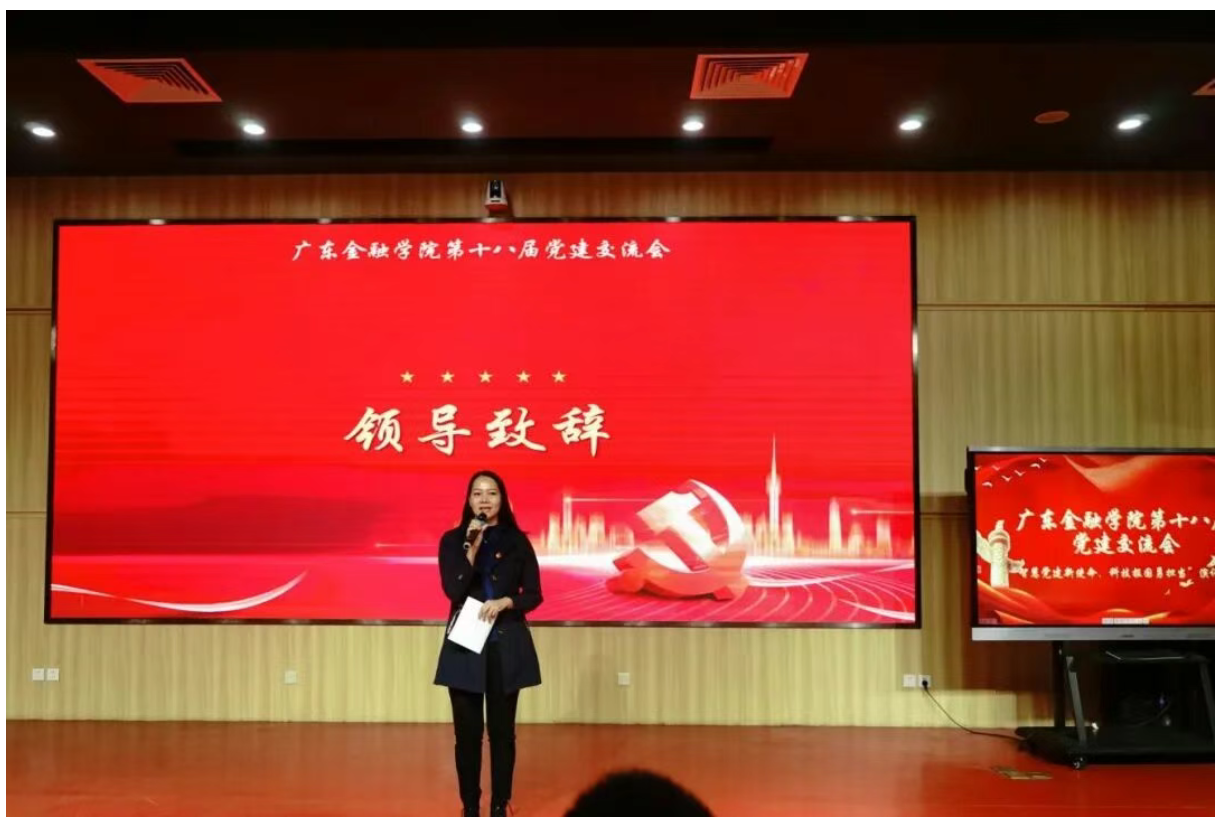 计算机学院党委书记蔡秋华发表开场致辞,她表示在新的时代背景下,“智慧党建”是党建工作与数字技术深度融合的全新形态,“科技报国”是每一位科研工作者、每一名青年学子必须扛起的时代重任。今年计算机学院承办第十八届党建交流会,以“智慧党建新使命,科技报国勇担当”为主题就是将“智慧党建”与“科技报国”相结合,将红色基因融入科技素养,让青年学子在思想的碰撞中凝聚共识,在语言的表达中坚定信念。她希望各位参赛选手能够用青春的视角、逻辑的力量和饱满的情感,深刻阐释广金学子对“智慧党建新使命”的理解,铿锵表达“科技报国勇担当”的决心。